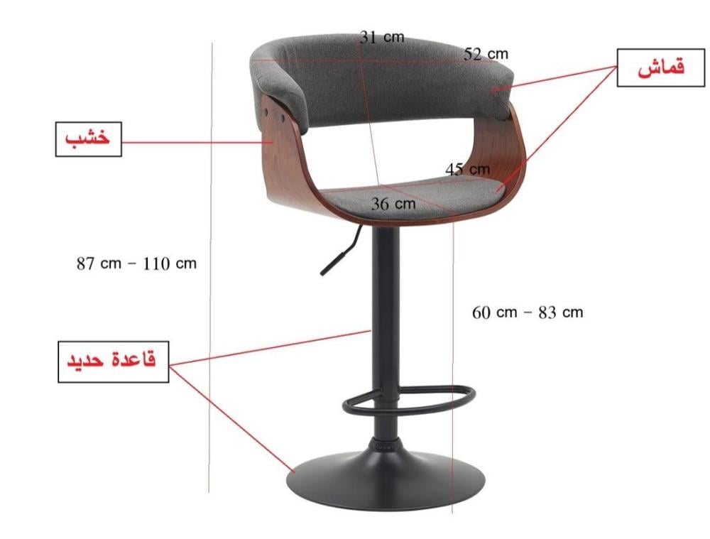 المقعد المبطن الناعم يضمن لك جلسة مريحة، وآلية تعديل الارتفاع تخليك تختار الوضع المثالي سواء لمطبخك، بارك المنزلي أو حتى الكافيه العصري.
