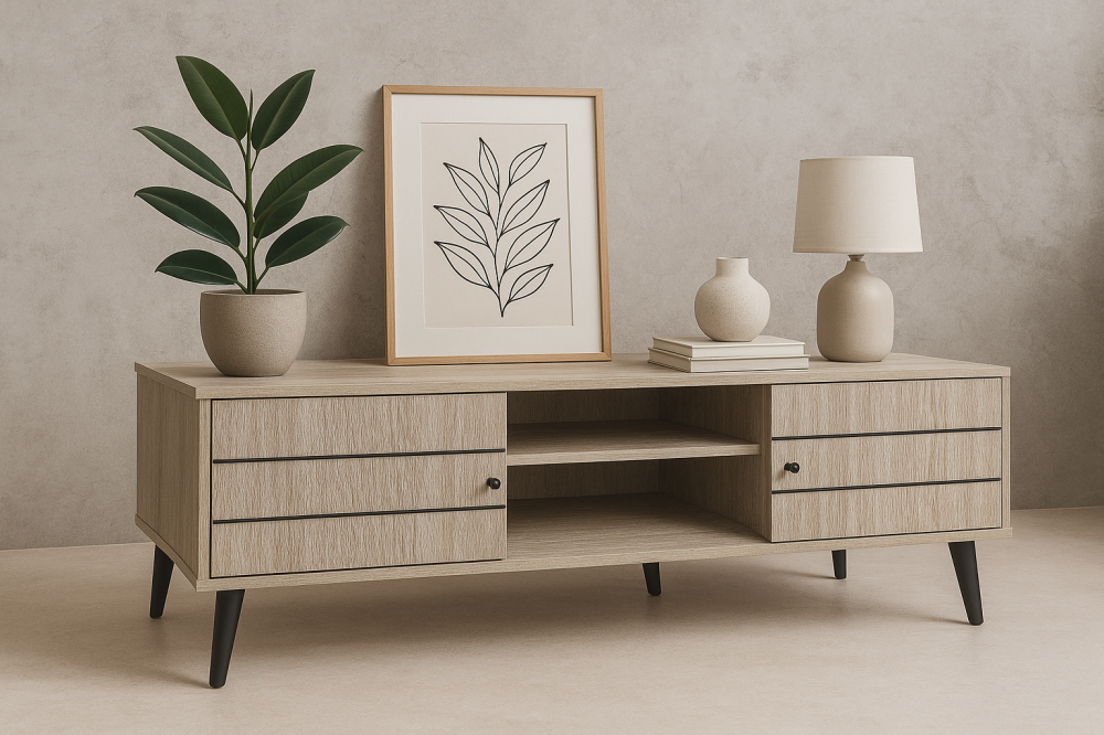 أضف لمسة من الجمال العصري لغرفة معيشتك مع طاولة التلفزيون المودرن بلون بيج أنيق ومقاس مثالي (180×40×45 سم) ليمنحك التوازن بين المساحة العملية والتصميم الجذاب.