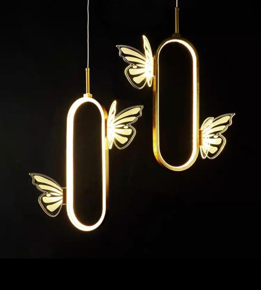 أضف لمسة من الأناقة والسحر إلى مساحتك مع هذه المصابيح المعلقة الفريدة. تصميم عصري بإطار ذهبي فاخر وأضواء LED دافئة، مزينة بأجنحة فراشات مضيئة تمنح المكان جواً حالماً ومميزاً. مثالية لغرف المعيشة، غرف النوم، والمقاهي الفاخرة! 🦋💡